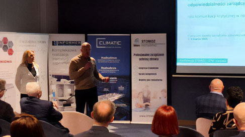 Podczas konferencji przedstawiciele KOMA NORD zaprezentowali temat budowania świadomości sytuacyjnej w szpitalu oraz roli zintegrowanych systemów komunikacji w sytuacjach kryzysowych.